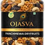 OJASVA Panchmewa Dry Fruits, a carefully curated blend of high-quality nuts and dried fruits. Packed with essential nutrients, this premium mix includes almonds, cashews, walnuts, raisins, and more—making it a perfect daily snack for a healthy lifestyle.